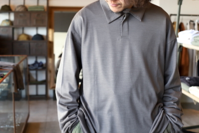 SUPER100S WOOL JERSEY L/S POLO CHARCOAL [ the bes ]