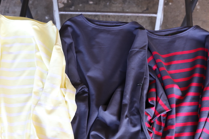 実際はバスクシャツと言えども、なかなかバスク地方で製作されるものは少ない中、フランスはバスク地方で60年以上営んでいるカットソーメーカーで生産され、生地を編むことから、裁断、縫製に至るまで全ての工程を行っているという正真正銘のバスクシャツです。