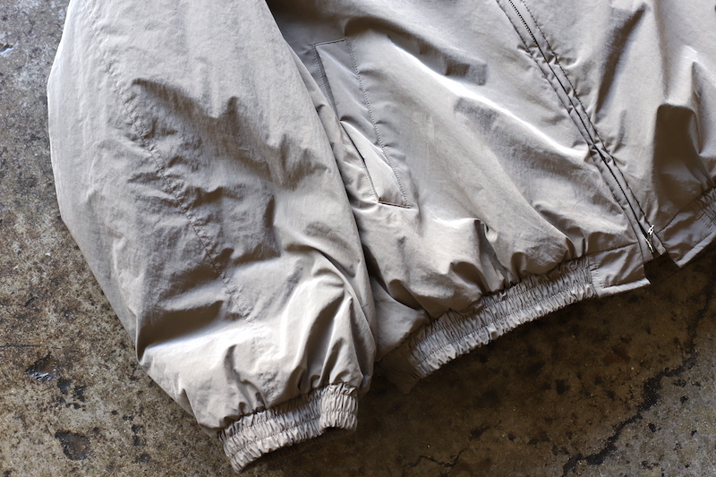 洗い加工をかけ、程良いしわ感を出したOLMETEX社のPL,PA,COツイルを使用した中綿ジャケット。