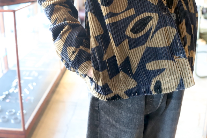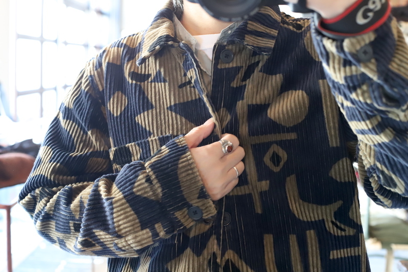 ヨーロッパらしく100%コットン素材のコーディロイである事や、大胆な幾何学模様に癖のある配色。どこを切り取ってもヨーロッパの香りがしてくれるジャケットです。