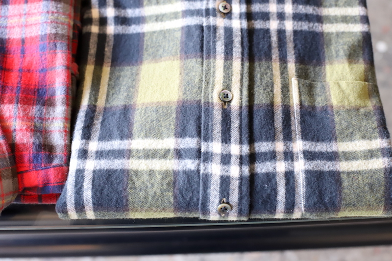 非常に柔らかいフランネル素材で古着で見かける物よりやや薄手。使い勝手の良い程良い厚みで、カジュアルですが、上品なネルシャツとして仕上がっています。