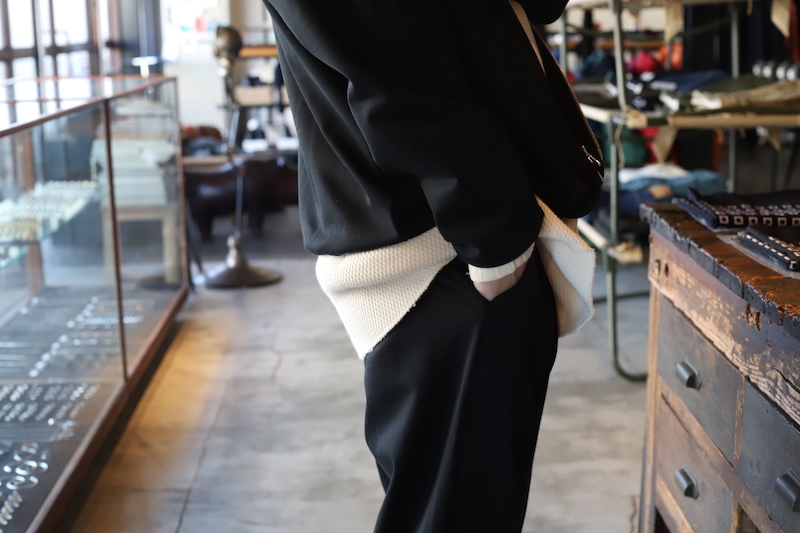 裏毛とは思えないほどの繊細で美しい目面をしており、上質なハリ感があり、適度なドレープが生まれています。