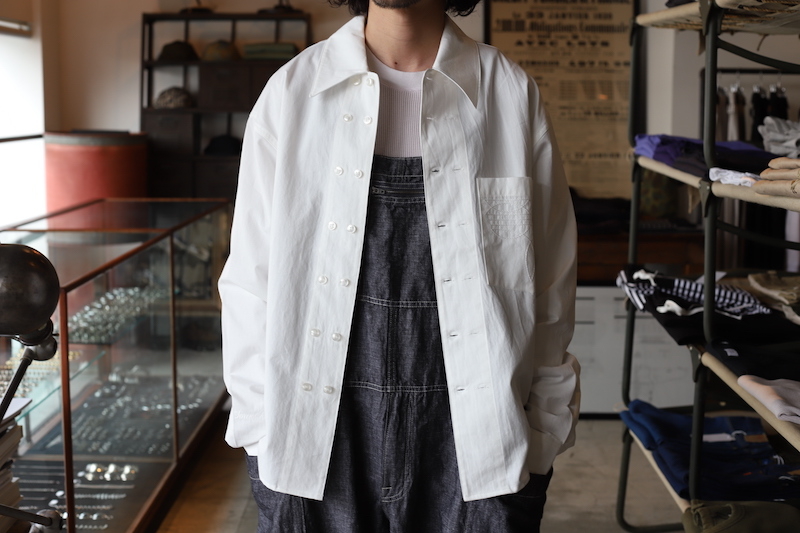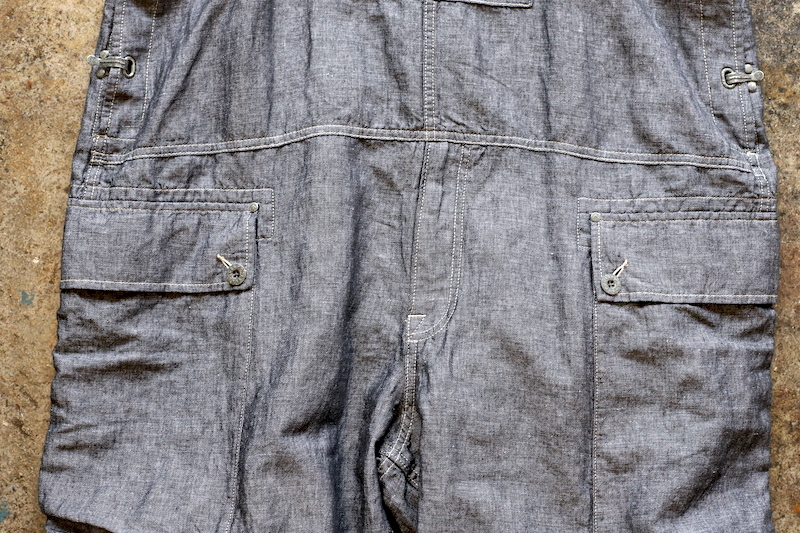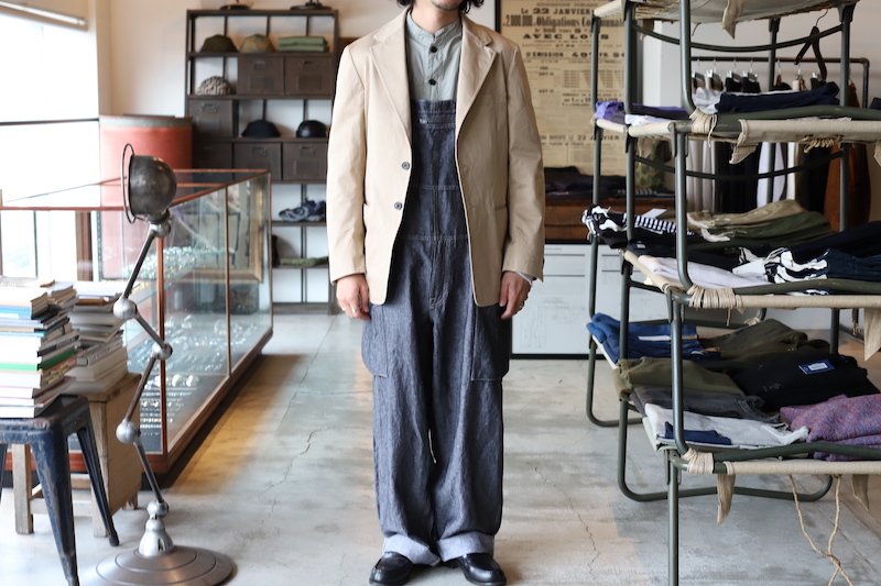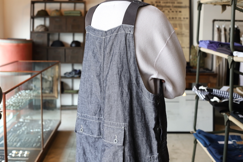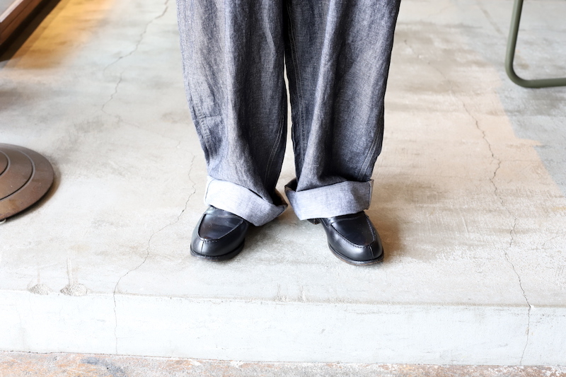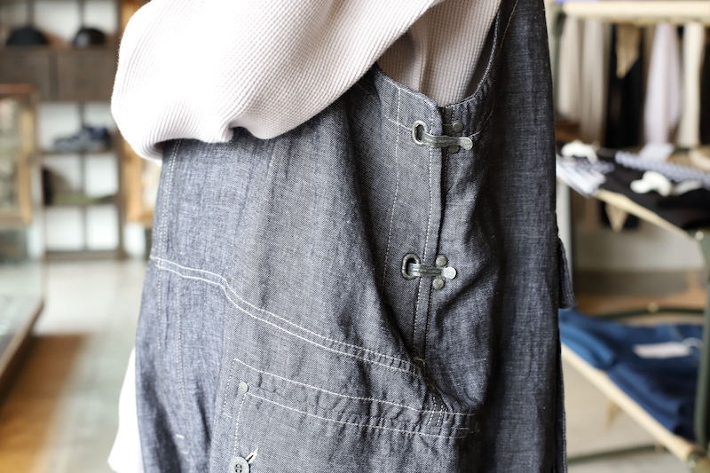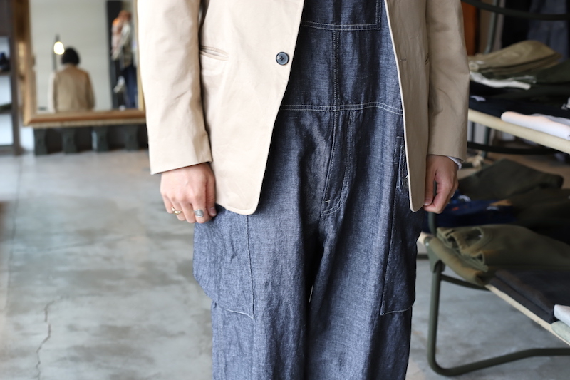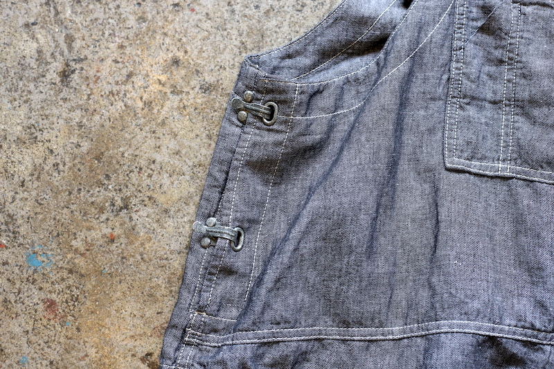 今回は非常に軽量なリネンデニムを採用。今まではキャンバス生地やオンス厚めのデニム生地が多かったのですが、リネンの風合いである凹凸が見られるライトなデニム素材。