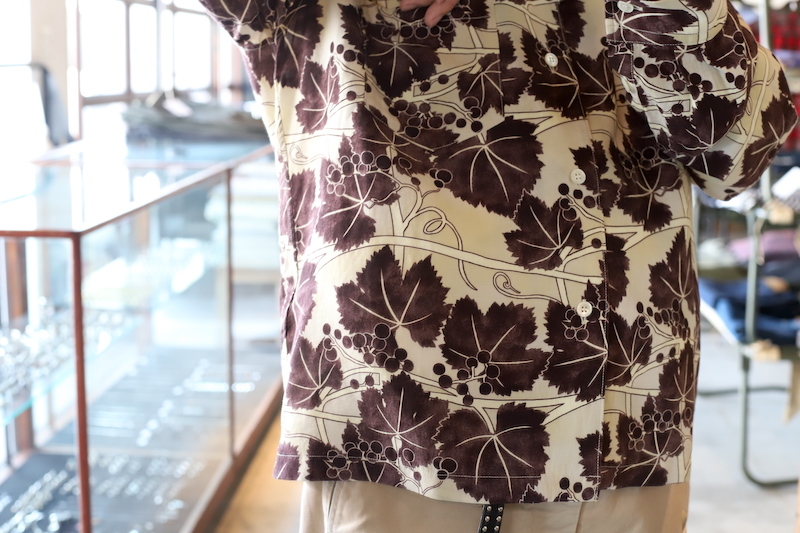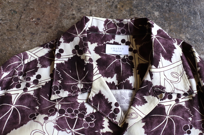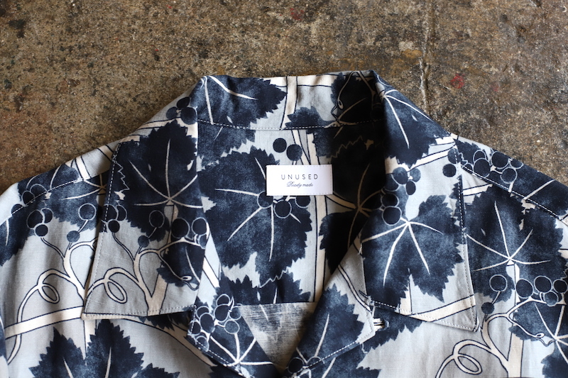 UNUSEDからリリースされる柄物も結構な確率で好みのモノが多い。今季はぶどう柄とでも言いましょうか。図柄はもちろん染色ぐあいが非常に良いです。