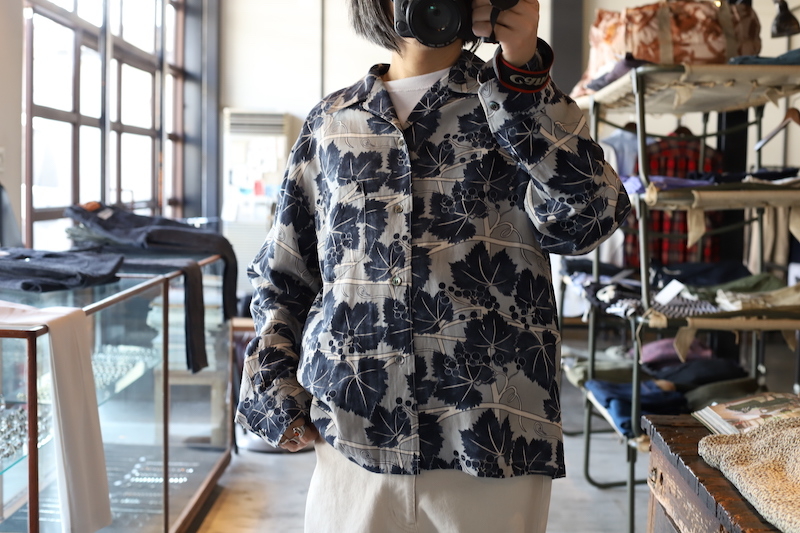 古着で言う所の[ レーヨンシャツ ]ドレープ性に富んでいて、春夏に少しルーズに着て美しいシルエットのシャツ。
