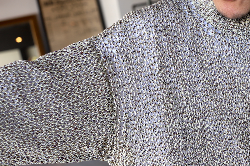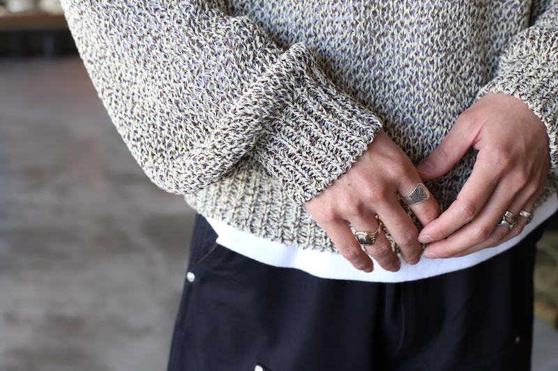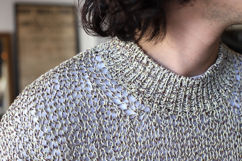 5色の糸を組み合わせた杢コード糸を使用した、春向けのプルオーバーニット。